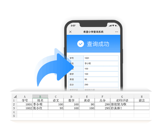 一键将电子表格转换为在线查询,轻松实现家长自助查询,节省时间、保护隐私