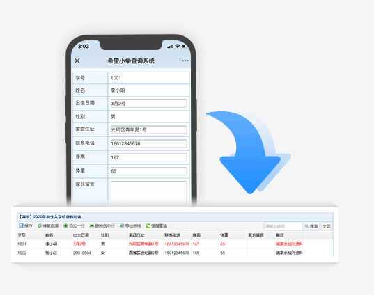老师可允许修改查询结果中的部分列,方便实现家长自主提交信息,老师省心、家长放心