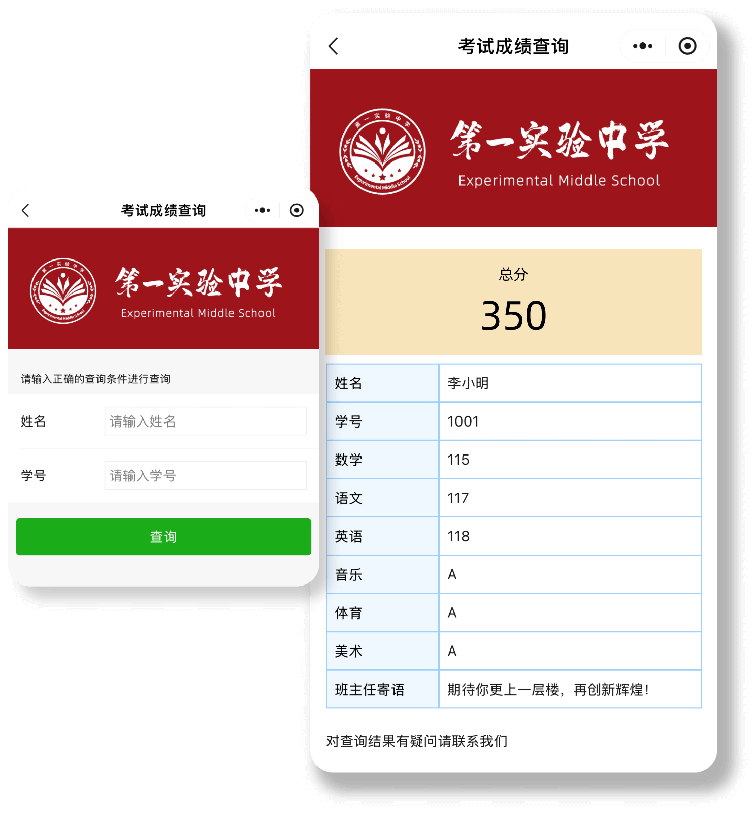一键将电子表格转换为在线查询,轻松实现家长自助查询,节省时间、保护隐私